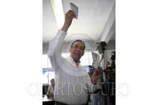 SALTILLO, COAHUILA, 01JULIO2012.- El Ex-gobernador Humberto Moreira Valdés reapareció esta mañana para emitir su voto por presidente de la República, diputados federales y senadores, acompañado de sus hijos y de su esposa Vanessa Gerrero en la Escuela Urbano FloresP. FOTO: KARLA IZTEL RUIZ / CUARTOSCURO.COM