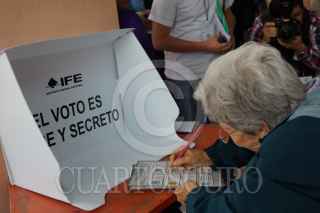 MÉXICO, D.F., 01JULIO2012.- Una señora de la tercera edad emite su voto "libre y secreto" en la casilla especial para foráneos ubicada en la Primaria Centro Urbano Presidente Alemán sobre la avenida Coyoacán. FOTO: PEDRO ANZA /CUARTOSCURO.COM