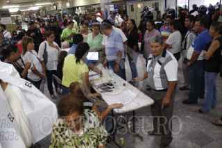 CIUDAD. VICTORIA, TAMAULIPAS 01JULIO2012.- Alrededor de mil quinientas personas se quedaron sin poder votar en la casilla especial ubicada en la central de autobuses, la fila abarcaba varias cuadras a la redonda, cientos de ciudadanos llevaban mas de 8 horas formados. La policia estatal formó un cerco de seguridad alrrededor de la casilla para evitar disturbios ante la molestia de algunas personas. FOTO: PEDRO KRISTIAN LÓPEZ / CUARTOSCURO.COM