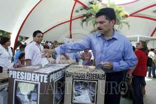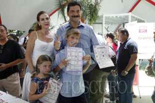 VILLAHERMOSA, TABASCO, 01JULIO2012.-Gerardo Priego Tapia, candidato a la gubernatura por el PAN, acudió a realizar su voto en compañía de su familia. FOTO: MARCO POLO GUZMÁN HERNÁNDEZ /CUARTOSCURO.COM