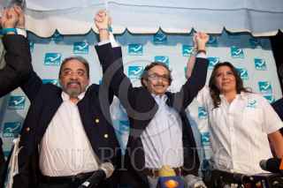 MÉXICO, D.F. 01JULIO2012.- Gabriel Quadri De La Torre, candidato presidencial de Nueva Alianza, en conferencia de prensa exhortó a Andrés Mauél López Obrador, candidato del Movimiento Progresista, a que siguiera la misma línea de Josefina Vázquez Mota, candidata del PAN, a reconocer los resultados de acuerdo al "Pacto de Civilidad firmado en el IFE. Fué Acompañado por el presidente de su partido, Luis Castro Obregón y de Mónica Arreola Gordillo, secretaria general, quien reconoció que según encuestas ellos obtuvieron el 3.4 %, en los resultados presidenciales, 3.5 % en senadores, y en diputados 4%. FOTO: JUAN PABLO ZAMORA /CUARTOSCURO.COM