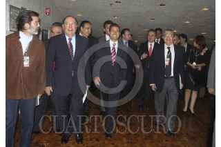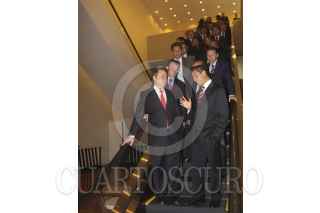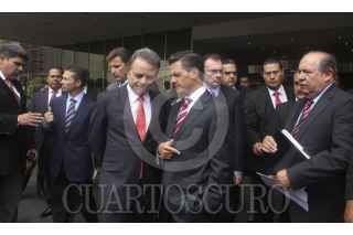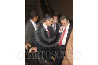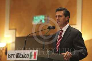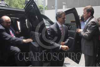 MÉXICO, D.F., 02JULIO2012.- Pedro Joaquin Coldwell platica con Enrique Peña Nieto, virtual presidente electo de México, a su salida de un hotel de la zona de Polanco donde ofrecieron un mensaje a los medios de comunicación. FOTO: SAÚL LÓPEZ /CUARTOSCURO.COM
