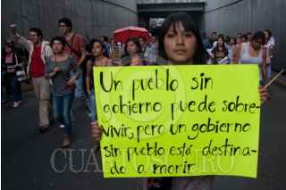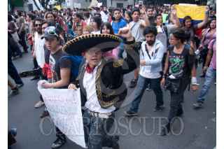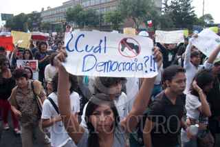 MÉXICO, D.F. 02JULIO2012.- Jóvenes del grupo #Yosoy132, se manifestaron en contra de lo que consideran elecciones fraudulentas, marcharon de la "Estela de Luz" al monumento a la Revolución, y luego a las instalaciones del PRI y de la empresa Televisa. FOTO: CHRISTIANN DAVIS /CUARTOSCURO.COM