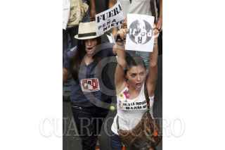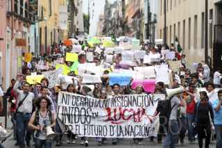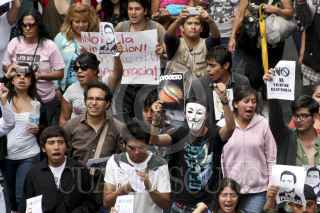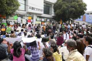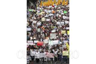 PUEBLA, PUEBLA, 03JULIO2012.- Miles de jóvenes integrantes del movimiento Yo soy132 marcharon desde el zócalo de la ciudad hasta las oficinas del Instituto Federal Electoral, en contra de los resultados de la jornada electoral reciente, en que se coloca a Enrique Peña Nieto como virtual ganador de la contienda electoral. FOTO: HILDA RÍOS /CUARTOSCURO.COM