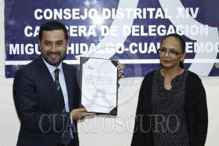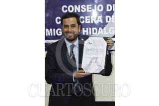 MÉXICO, D.F., 05JULIO2012.- Victor Hugo Romo, candidato del PRD a la jefatura delegacional en Miguel Hidalgo, recibió esta noche su constancia de mayoría en el Consejo Distrital XIV de Miguel Hidalgo. FOTO: RODOLFO ANGULO /CUARTOSCURO.COM