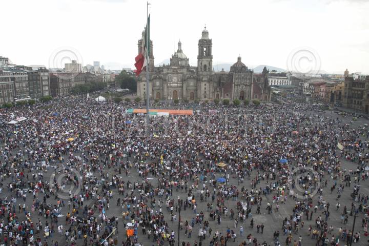 MÉXICO, D.F., 07JULIO2012.- Cientos de jóvenes denominados "Anti-peña" marcharon del Ángel de la Independencia a el Zócalo, los estudiantes en su mayoría se expresaron en contra de Enrique Peña Nieto, candidato del PRI-PVEM a la Presidencia de la República y quien hasta este momento el IFE lo señala con ventaja sobre sus oponentes, también expresaron su inconformidad contra el Instituto Federal Electoral, quien según ellos no fue un arbitro imparcial en la contienda. FOTO: MOISÉS PABLO /CUARTOSCURO.COM