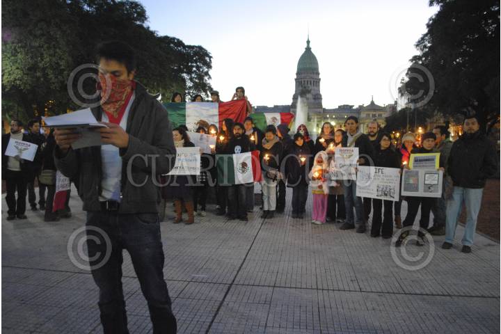 BUENOS AIRES, ARGENTINA, 07JULIO2012- En la Plaza del Congreso de la capital argentina, alrededor de 50 mexicanos se unieron a las marchas realizadas a nivel mundial para manifestar su descontento con el proceso electoral y también ante la imposición de Enrique Peña Nieto a la presidencia de México. FOTO: MARÍA VALTIERRA ANZA /CUARTOSCURO.COM