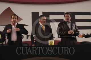 MÉXICO, D.F., 08JULIO2012.- Luis Walton, presidente nacional de Movimiento Ciudadano; Jesús Zambrano Grijalva, presidente nacional del PRD; y Ricardo Monreal, coordinador de la campaña de Andrés Manuel López Obrador; en conferencia de prensa en el IFE. FOTO: IVÁN STEPHENS /CUARTOSCURO.COM
