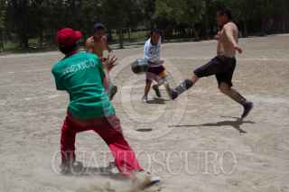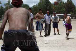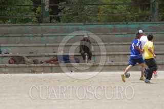 MÉXICO, D.F., 09JULIO2012.- Jóvenes y niños en situación de calle, después de asistir a la ceremonia de inauguración del mundialito de fútbol callejero en el Deportivo Oceanía, realizaron un encuentro amistoso fuera del torneo en uno de los campos de este deportivo. FOTO: GUILLERMO PEREA /CUARTOSCURO.COM