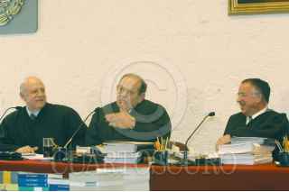MEXICO, D.F. 31MARZO2005.- Los ministros Guillermo Ortíz Mayagoitia, José de Jesús Gudío Pelayo y Mariano Azuela Guitrón, presidente de la Suprema Corte de Justicia de la Nación, durante la sesión del Alto Tribunal, efectuada hoy en la sede alterna. FOTO: Victor Hugo Cabrera/CUARTOSCURO.COM
