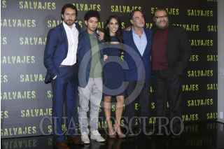 MÉXICO, D.F., 10JULIO2012.- Los actores, Demian Bichir, Diego kataño, Elizabeth Cervantes, el director Oliver Stone y el actor, Joaquin Cosío, presentaron ante los medios de comunicación la nueva película "Salvajes", el director de "Pelotón" arriba con esta nueva cinta que aborda las redes del narcotráfico. FOTO: FRANCISCO RODRÍGUEZ /CUARTOSCURO.COM