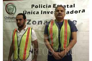 CIUDAD JUÁREZ, CHIHUAHUA, 10JULIO2012.- Agentes de la Fiscalía General del Estado de Chihuahua, al instalar un puesto de revisión en el cruce de la Avenida Paseo de la Victoria y Camino Viejo a San José en búsqueda de prófugos de la justicia y autos robados, ubicaron un vehículo que se desplazaba de manera sospechosa por lo que al marcarle el alto para una revisión, su conductor aceleró la marcha hasta ser interceptado unos metros más adelante, en la entrada al fraccionamiento Catalina. Los ocupantes del vehículo Volkswagen, línea Jetta, color gris con placas nacionales del estado Chihuahua, fueron identificados como Daniel Franco López (a) "El Micha" de 26 años y Fernando Arellano Romero (a) "El Gama" de 43 años. Tras la identificación de ambos con los documentos que portaban, se realizó una consulta de antecedentes en la base de datos del sistema Plataforma México, resultando que Franco López y Arellano Romero son requeridos por la Procuraduría General de la Republica por su presunta responsabilidad en delitos federales así como por una Corte Federal de los Estados Unidos con sede en Texas, por delitos contra la salud. FOTO: CUARTOSCURO.COM