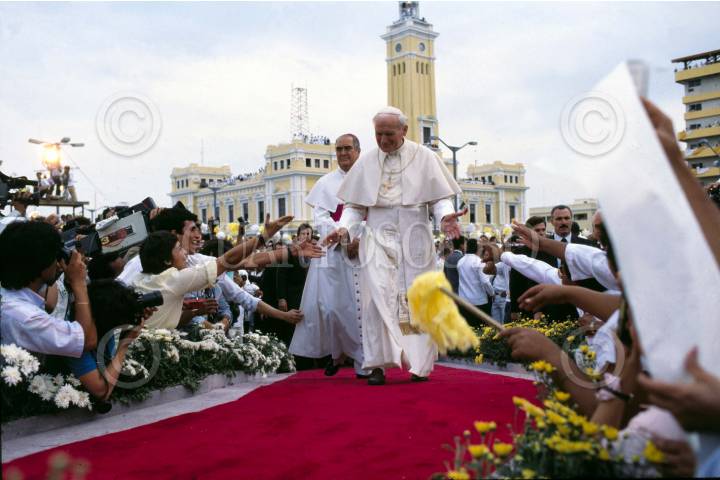MEXICO D.F., 1 DE ABRIL DE 2005.- La gran tensión tras el último parte médico sobre la salud del Papa, que hablaba de una insuficiencia cardiovascular y renal, ha desatado diversos rumores que apuntan a la eventual muerte de Juan Pablo II. Aqui durante la visita en la ciudad de México en 1990. FOTO: PEDRO VALTIERRA/CUARTOSCURO.COM