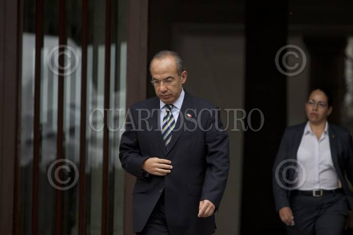 MÉXICO, D.F., 12JULIO2012.- Daniel Servitje, director general del grupo industrial Bimbo, saluda a Felipe Calderón Hinojosa, Presidente de México, tras la firma de convenio de concertación de acciones para la reducción de sal en la producción del pan, en la residencia oficial de Los Pinos. FOTO: MOISÉS PABLO /CUARTOSCURO.COM