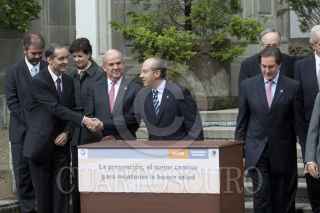 MÉXICO, D.F., 12JULIO2012.- Daniel Servitje, director general del grupo industrial Bimbo, saluda a Felipe Calderón Hinojosa, Presidente de México, tras la firma de convenio de concertación de acciones para la reducción de sal en la producción del pan, en la residencia oficial de Los Pinos. FOTO: MOISÉS PABLO /CUARTOSCURO.COM