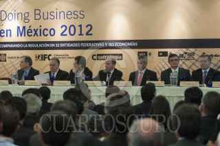 MÉXICO, D.F., 12JULIO2012.- Valentin Diez Morodo, empresario, José Antonio Torre, subsecretario de Competitividad y Normatividad de la Secretaría de Economía, y José Antonio González Anaya, subsecretario de ingresos de la Secretaría de Hacienda y Crédito Público, durante la presentación del Doing Business 2012 en un hotel de la colonia Polanco. FOTO: MOISÉS PABLO /CUARTOSCURO.COM
