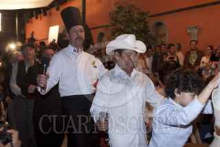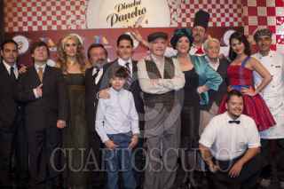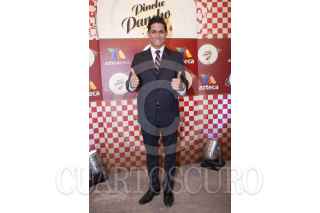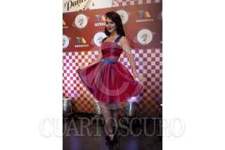 MÉXICO, D.F., 12JULIO2012.- La actríz, Wendy Braga y el cantante Erasmo Catarino y su banda "La Plebe" posan para las camaras despues de la conferencia de prensa donde presentaron al elenco de la nueva seri de televisión de Televisión Azteca, "Pinche Pancho" comedia de enredos que estrena el próximo sábado 14 a las 9:30 hrs por canal 7. FOTO: FRANCISCO RODRÍGUEZ /CUARTOSCURO.COM