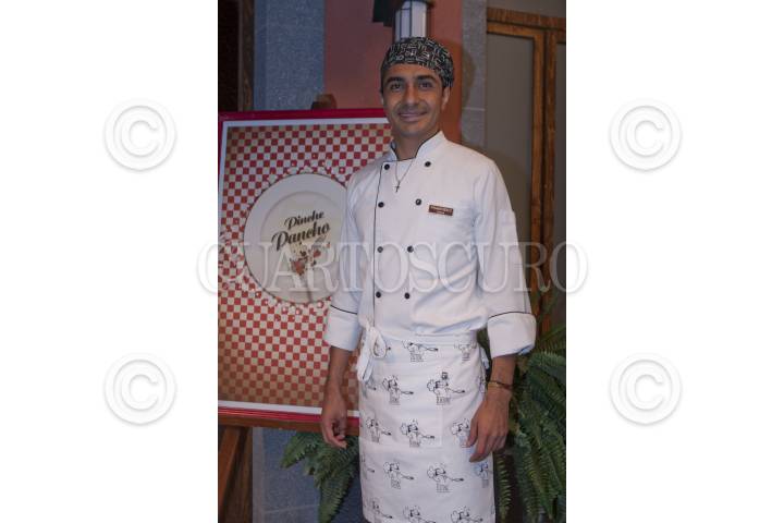 MÉXICO, D.F., 12JULIO2012.- La actríz, Wendy Braga y el cantante Erasmo Catarino y su banda "La Plebe" posan para las camaras despues de la conferencia de prensa donde presentaron al elenco de la nueva seri de televisión de Televisión Azteca, "Pinche Pancho" comedia de enredos que estrena el próximo sábado 14 a las 9:30 hrs por canal 7. FOTO: FRANCISCO RODRÍGUEZ /CUARTOSCURO.COM