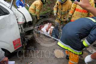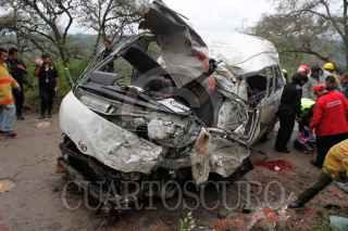 VILLA DEL CARBÓN, ESTADO DE MÉXICO, 13JULIO2012.- El choque entre una combi y un autobús de pasajeros dejo como saldo la muerte de dos personas y 15 lesionado, los cuales fueron trasladados al Hospital de Lomas Verdes; la desgracia se dió cuando las unidades transitaban en la carretera Villa del Carbon-Atizapan. FOTO: LUIS CARBAYO /CUARTOSCURO.COM