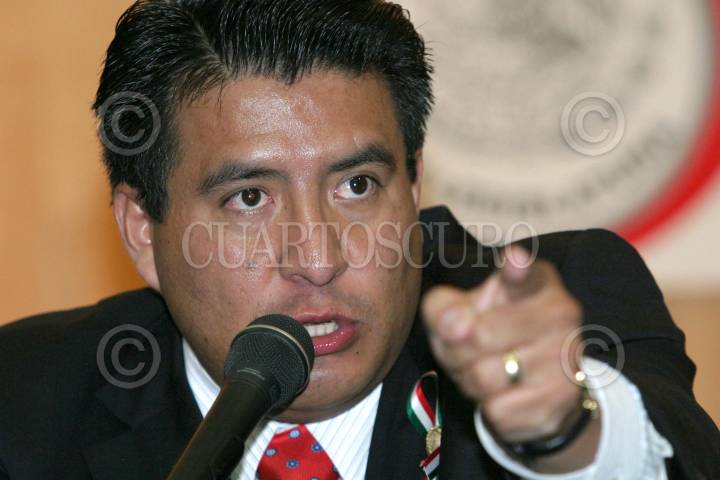 MEXICO, D.F., 01ABRIL2005.- Francisco Frías (PRI), integrante de la Comisión Instructora, durante la conferencia de prensa al término de la reunión en la cual se voto si procede el juicio de procedencia contra el jefe de gobierno. El PAN y el PRI votaron a favor y el PRD en contra con lo cual la desición pasa al pleno legislativo. FOTO: Moisés Pablo/CUARTOSCURO.COM