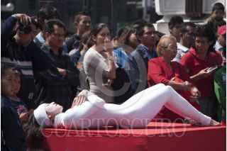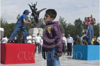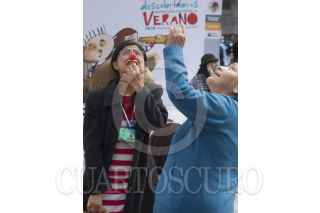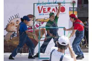MÉXICO, D.F., 15JULIO2012.- Se presentó en la explanada del Palacio Nacional de Bellas Artes "Descubridores: Promoción Nacional de Verano 2012", espectáculo para niños de clown, zanqueros y malabares, promoviendo el teatro callejero y los talleres que el INBA ofrece en vacaciones de verano. FOTO: JOYCE GARCÍA / CUARTOSCURO.COM