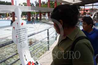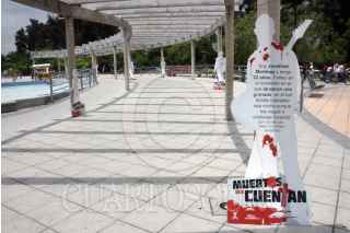 GUADALAJARA, JALISCO, 15JULIO2012.- El día de hoy en el parque San Jacinto de esta ciudad, la Federación de Estudiantes Universitarios (FEU) realizo una exposición de siluetas humanas, misma que lleva el nombre de "Muertos que Cuentan" esto como un llamado a la las autoridades bajo la consigna de no mas sangre y no mas víctimas de los daños colaterales provocados por el crimen organizado en México. FOTO: FERNANDO CARRANZA /CUARTOSCURO.COM