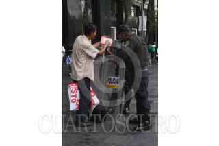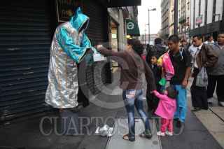 MEXICO, DF 15JULIO2012.- Algunas "botargas" y "estatuas vivientes" se apostaron en el corredor de Madero. Pese a los operativos implementados por el fideicomiso del Centro Histórico algunos se arriesgaron a ser detenidos y salieron a trabajar. FOTO: JUAN PABLO ZAMORA /CUARTOSCURO.COM