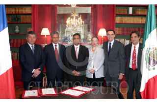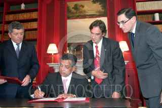MEXICO, D.F., 06ABRIL2005.- Fidel Herrera, gobernador de Veracruz y Richard Duque, embajador de Francia en México, firmaron un acuerdo en materia educativa y cultural en la sede de la embaja de francesa. FOTO: Moisés Pablo/CUARTOSCURO.COM