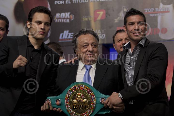 MÉXICO, D.F., 17JULIO2012.- El boxeador mexicano, Juñio César Chávez Jr. hijo del cinco veces campeón, Julio César Chávez González retó al argentino Sergio "El Maravilla" Martínez en vísperas de el duelo que sostendrán el próximo 15 de Septiembre por el título de peso medio del CMB. FOTO: FRANCISCO RODRÍGUEZ /CUARTOSCURO.COM