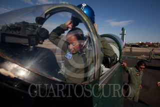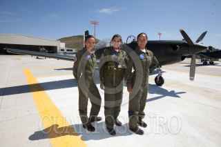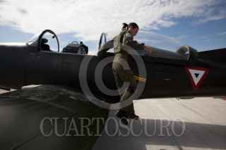 SANTA GERTRUDIS, CHIHUAHUA 17JULIO2012.- El Colegio del Aire realiza sus exámenes finales en el Centro Nacional de Adiestramiento a los 125 cadetes que egresarán de esta, la generación 71, entre estos cadetes se encuentran 3 mujeres , Karen Vanesa Velázquez, Priscila Martínez Moral y Dalia Teresa Garduño Ortiz. Ellas realizaron sus exámenes en, avionetas Pilatus PC7. FOTO: JUAN PABLO ZAMORA /CUARTOSCURO.COM