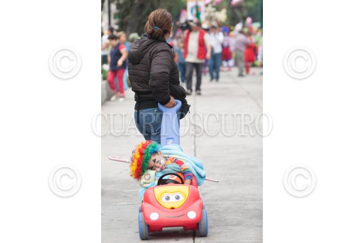 MÉXICO, D.F., 17JULIO2012.- Decenas de payasos realizaron hoy su peregrinación anual a la Basilica de Guadalupe. El recorrido de la alegría partió de la Glorieta de Peralvillo y culminó con una misa en La Villa de Guadalupe. Las Payasitas se encargaron de llevar una imagen de la Guadalupana la cual encabezó la peregrinación. FOTO: FRANCISCO RODRÍGUEZ /CUARTOSCURO.COM