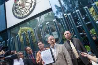 MÉXICO, D.F., 19JULIO2012.- Raul Cervantes, acudio a la Procuraduría General de la República (PGR) a entregar una demanda para que investigue como falsas imputaciones de PAN y PRD sobre un presunto lavado de dinero utilizado en la campaña presidencial de Enrique Peña Nieto. FOTO: RODOLFO ANGULO /CUARTOSCURO.COM