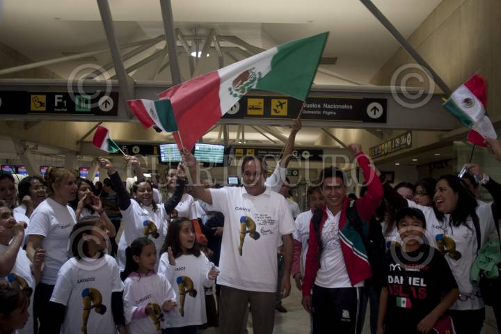 MÉXICO, D.F. 20JULIO2012.- La Selección de Taekwondo integrada por, Diego García, Janet Alegria y Erik Osornio partieron la noche de hoy con destino a la ciudad de Londres en Inglaterra para participar en los Juegos Olimpicos de Londres 2012 que iniciaran el pr´oximo 27 de este mes. FOTO: FRANCISCO RODRÍGUEZ /CUARTOSCURO.COM