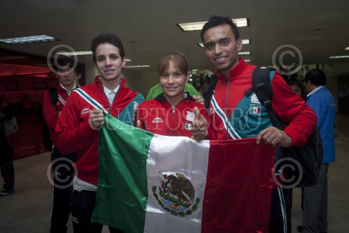 MÉXICO, D.F. 20JULIO2012.- La Selección de Taekwondo integrada por, Diego García, Janet Alegria y Erik Osornio partieron la noche de hoy con destino a la ciudad de Londres en Inglaterra para participar en los Juegos Olimpicos de Londres 2012 que iniciaran el pr´oximo 27 de este mes. FOTO: FRANCISCO RODRÍGUEZ /CUARTOSCURO.COM