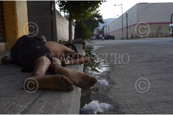 ACAPULCO, GUERRERO, 20JULIO2012.-Alrededor de las 20 horas, un joven de entre 14 y 17 años fue ultimado a balazos entre la calle Ignacio Manuel Altamirano y Andador zuli’ en la colonia Renacimiento, atrás de la tienda Soriana, en las inmediaciones del restaurante Gervasio ´s los asesinos dejaron un mensaje en una cartulina. FOTO: BERNANDINO HERNANDEZ /CUARTOSCURO.COM