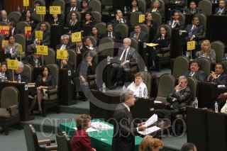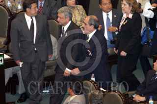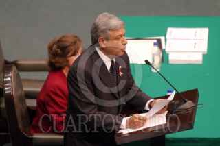 MEXICO, D.F., 07ABRIl2005.- Andrés Manuel López Obrador, jefe de gobierno, se presentó ante el pleno de la Cámara de Diputados que se erigió en Jurado de Procedencia, para decidir si se le retira el desafuero, en el caso de desacato a una orden judicial en el caso del predio del Encino. En la imagen, lo acompañan Pablo Gómez, coordinador de la bancada perredistas. FOTO: Moisés Pablo/CUARTOSCURO.COM