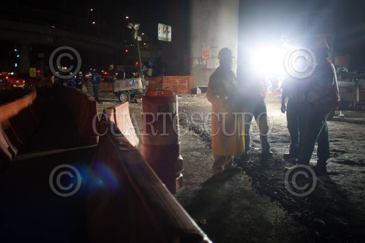 MÉXICO, D.F., 20JULIO2012.- La noche de hoy se cerraron los carriles centrales del periférico entre los tramos de San Jerónimo y Boulevard de la Luz, para colocar un cabezal de 24 metros de altura y 325 toneladas como parte de las obras de la Autopista Urbana Poniente, la vialidad se restabelcerá hasta el domingo a las 18 hrs. FOTO: FRANCISCO RODRÍGUEZ /CUARTOSCURO.COM