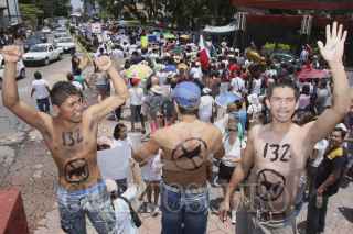 CUERNAVACA, MORELOS, 22DEJULIO2012.- Más de mil simpatizantes con el movimiento #YoSoy132 marcharon contra la imposición del virtual candidato electo Enrique Peña Nieto en la capital morelense. FOTOS: ALMA LAFAYET / CUARTOSCURO.COM