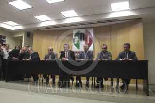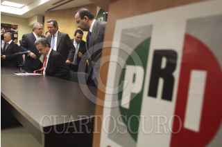 MÉXICO, D.F., 23JULIO2012.- Pedro Joaquin Coldwell, presidente del PRI, acompañado de Raul Cervantes, en conferencia de prensa anunciaron que investigaran a fondo los recursos por mil 200 millones de pesos que se manejaron en la campaña de Andrés Manuel López Obrador. FOTO: SAÚL LÓPEZ /CUARTOSCURO.COM