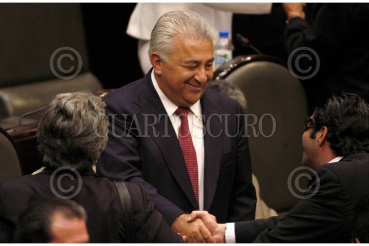 MEXICO, D.F. 07ABRIL2005.- Juan de Dios Castro, diputado del PAN, Emilio Chuayfett, coordinador de la bancada priísta en la Cámara de Diputados, y Manlio Fabio Beltrones, presidente de la mesa directiva en la Cámara de Diputados al término de la votación del dictamen donde se aprobó el desafuero del jefe de gobierno Andrés Manuel López Obrador. FOTO: Germán Romero/CUARTOSCURO.COM