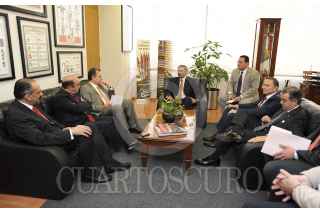 MÉXICO, D.F., 24JULIO2012.- Raúl Cervantes, Fernando Castro Trenti, Jesús Murillo Karam, Pedro Joaquin Coldwell, Sebastian Lerdo de Tejada, Carlos Ramírez Marín y Eduardo Sánchez, se reunieron con el consejero presidente del IFE, Leonardo Valdez Zurita. FOTO: SAÚL LÓPEZ /CUARTOSCURO.COM