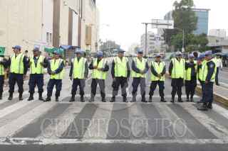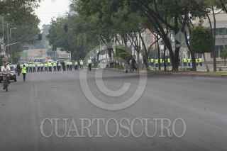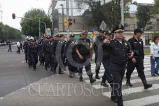 MÉXICO D.F., 26JULIO2012.- Elementos de la policia capitalina realizan un cerco a las instalaciones de Televisa Chapultepec para evitar que integrantes del 132 pernocten a las afueras del inmueble en lo que denominaron una toma "Simbólica" de dicha televisora, el cerco abarca Rio de la Loza desde Dr. Lucio hasta Dr. Vertíz y Balderas desde Arcos de Belem hasta Dr. Lavista. FOTO: FRANCISCO RODRÍGUEZ /CUARTOSCURO.COM