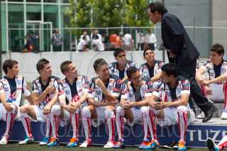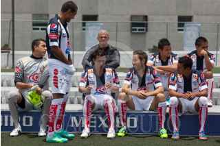 PACHUCA, HIDALGO 26JULIO2012.-Enrique Esqueda, operado recientemente en Murcia motivo por el que estará fuera de las canchas de siete a ocho semanas, antes de tomarse la foto la foto oficial en las instalaciones del Centro de Alto Rendimiento Tuzo en la Universidad del Futbol. A un día de que arranque la Jornada 2 del Torneo Apertura 2012. FOTO: JUAN PABLO ZAMORA /CUARTOSCURO.COM