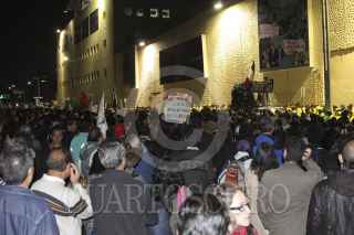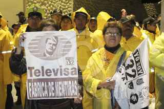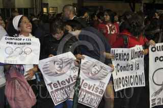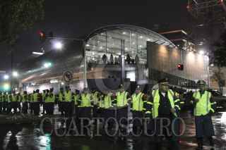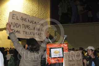 MÉXICO D.F., 26JULIO2012.- Integrantes del movimiento "Yo Soy 132", SME y organizaciones sociales, se manifestaron frente a las instalaciones de Televisa Chapultepec, donde realizaron una toma simbólica de la televisora. Personal de la SSP-DF resguardaron las instalaciones para evitar agresiones a los edificios de Televisa. FOTO: SAÚL LÓPEZ /CUARTOSCURO.COM
