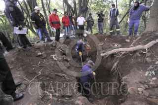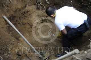 HUIXQUILUCAN, ESTADO DE MEXICO, 27JULIO2012.- Elementos de la policía y forense continúan con la búsqueda de cuerpos después de la confesión de uno de los sicarios, quienes argumentan que enterraron cadáveres en diferentes zonas del poblado de San Juan Yautepec. FOTO: LUIS CARBAYO /CUARTOSCURO.COM