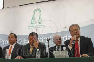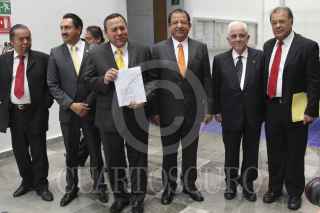 MÉXICO, D.F., 27JULIO2012.- Jesús Zambrano, presidente del PRD, acompañado de Alberto Anaya, líder del PT, Luis Waltón de Movimiento Ciudadano, Camerino Marquez Madrid, representante del PRD ante el IFE y el ex ministro de la Suprema Corte de Justicia de la nación, Genaro Gongora Pimentel, se reunieron con magistrados que integran la comisión instructora para calificar la elección presidencial del Tribunal Electoral del Poder Judicial de la Federación. FOTO: SAÚL LÓPEZ /CUARTOSCURO.COM