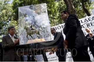 MÉXICO, D.F., 29JULIO2012.- Esta tarde en la Glorieta de la Palma, fue develada la estatua del insurgente Ignacio López Rayón, la cual fue restaurada, al evento asistó el ingeniero Cuahutemoc Cárdenas. FOTO: PEDRO ANZA /CUARTOSCURO.COM
