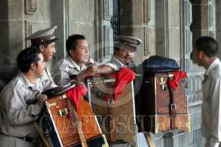 MEXICO, D.F., 08ABRIL2005.- Organilleros se toman un descanso en los portales del Palacio del Ayuntamiento. FOTO: Moisés Pablo/CUARTOSCURO.COM