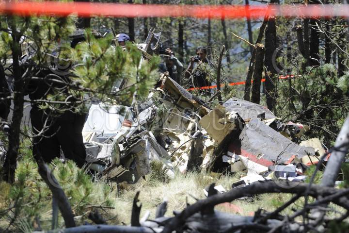 ISIDRO FAVELA, ESTADO DE MÉXICO, 28JULIO2012.- Un Helicóptero tipo Bell, se desplomó en el paraje El Molcajete, en la sierra del Temoluco. Al parecer, tras una falla mecánica ocurrió el accidente dejando como saldo a tres personas sin vida, entre ellas el empresario Juan Antonio Hinojosa hijo. Enrique Peña Nieto ha enviado sus condolencias a la familia Hinojosa. FOTO: LUIS CARBAYO /CUARTOSCURO.COM