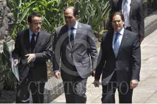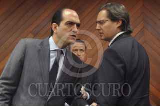 MÉXICO, DF 30JULIO2012 .-El titular de la COFEPRIS Mikel Arreola, el director general del IMSS, Daniel Karam, y el Secretario de salud, Salomón Chertorivski, ellegan a la presentación del quinto y sexto paquete de liberación de medicamentos genéricos para el ahorro de las familias mexicanas. FOTO: EDUARDO MORALES /CUARTOSCURO.COM